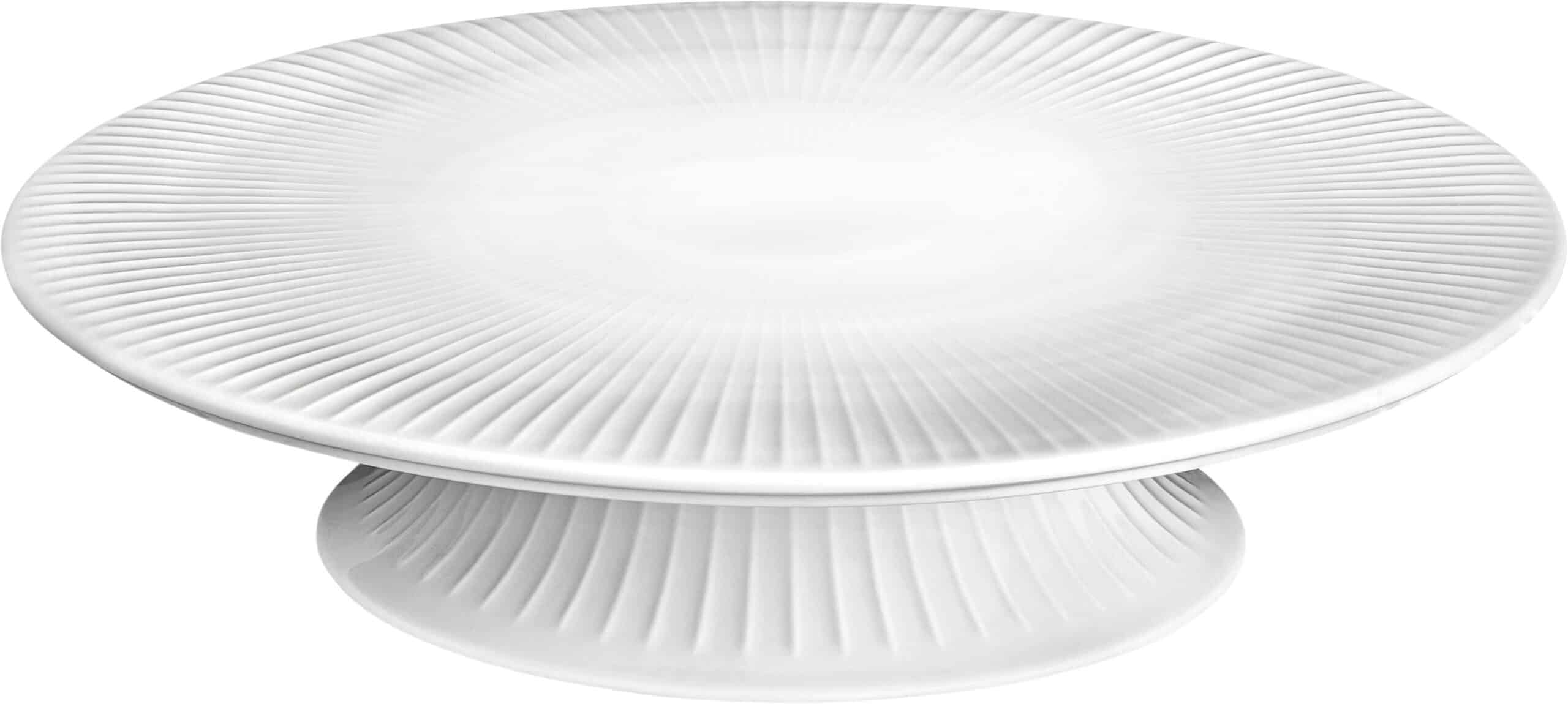 Dette elegante kagefad i hvid porcelæn er specielt designet til at præsentere kager og desserter på smukkeste vis. Det enkle udtryk kombineret med det stilrene look gør det til en moderne designklassiker og er helt uundværlig på kage- og dessertbordet.