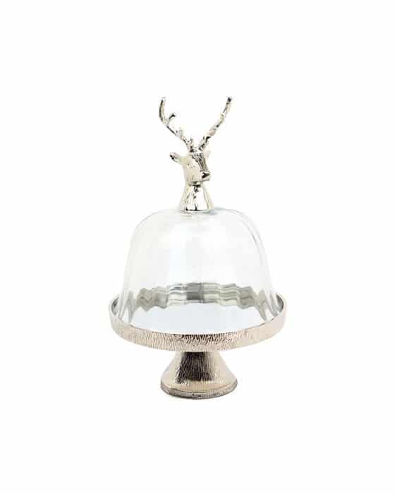 Syril kagefad på fod er en stilfuld serveringsdetalje, som kombinerer klassisk elegance med moderne charme. Det smukke fad står på en dekorativ fod i nikkelfinish og suppleres af en glaskuppel, som fremhæver og beskytter bagværk, oste eller små delikatesser.Det udskårne hjortehoved, som fungerer som håndtag på kuplen, giver designet en sofistikeret og stemningsfuld karakter, perfekt til både højtider og hverdagens fine anledninger.Syril kagefad på fod bliver et naturligt blikfang på det dækkede bord, barvognen eller køkkenbordet og tilfører en følelse af luksus og omtanke hver gang det bruges.